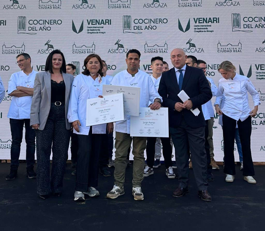 El chef Jorge Asenjo, jefe de cocina del restaurante BARRO, en Ávila, con una estrella Michelin y una estrella Verde, ha ganado la primera edición del Concurso Cocinero del Año Especial Carne de Caza 2025, que se ha celebrado este 22 de octubre en el Palacio de Valdeparaíso de Almagro y ha reunido a más de 250 asistentes con el fin de dar valor a la cocina de caza. Organizado por VENARI, la primera escuela gastronómica especializada en cocina cinegética del mundo, y Grupo Caterdata, responsable del prestigioso Concurso Cocinero del Año, y editora de esta revista, el certamen se perfila como una cita clave en el calendario gastronómico nacional.